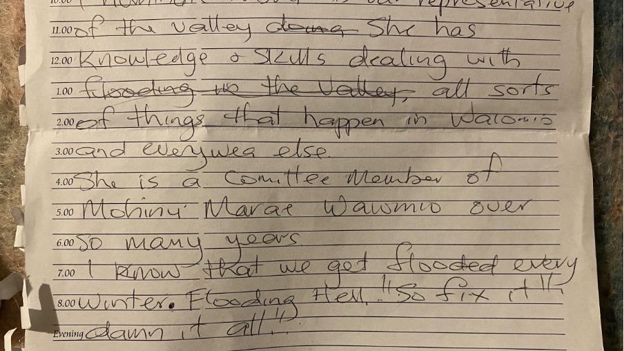 Nisha’s been attending meetings of the Far North Flooding Committee for the past two years. As I write this, she’s collecting letters of support to win a position on that same committee, so that she can actually speak at the meetings.